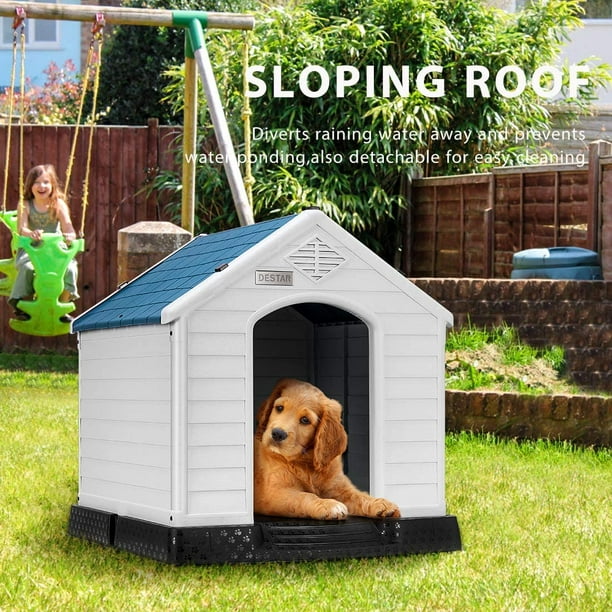 Destar Durable Waterproof Plastic Pet Dog House Indoor Outdoor Puppy Shelter Kennel With Air Vents And Elevated Floor Walmart Com