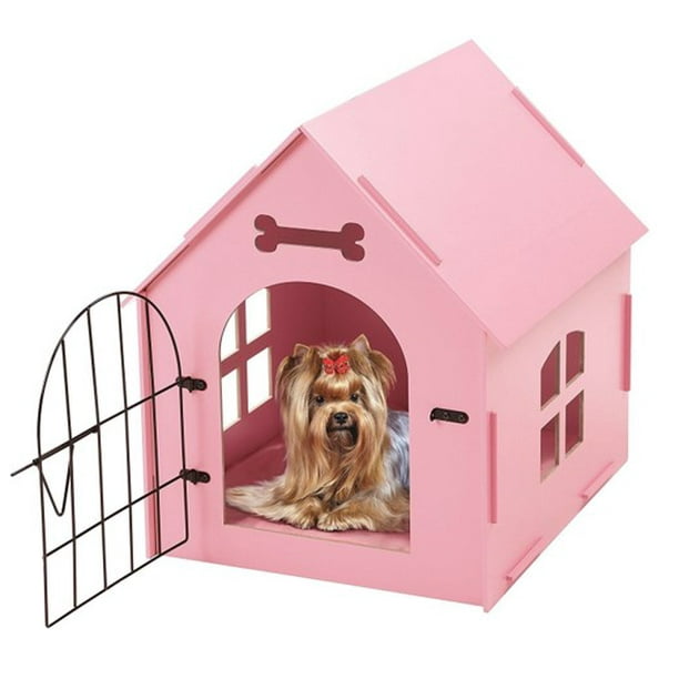 Portable Indoor Pet House Bed Wood Dog House With Door And Window Indoor Kennel For Small Dogs Cats Pet With Bed Mat Pink Walmart Com